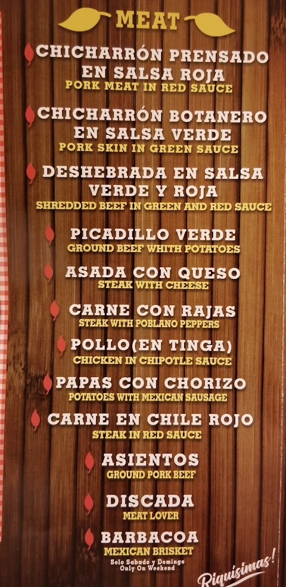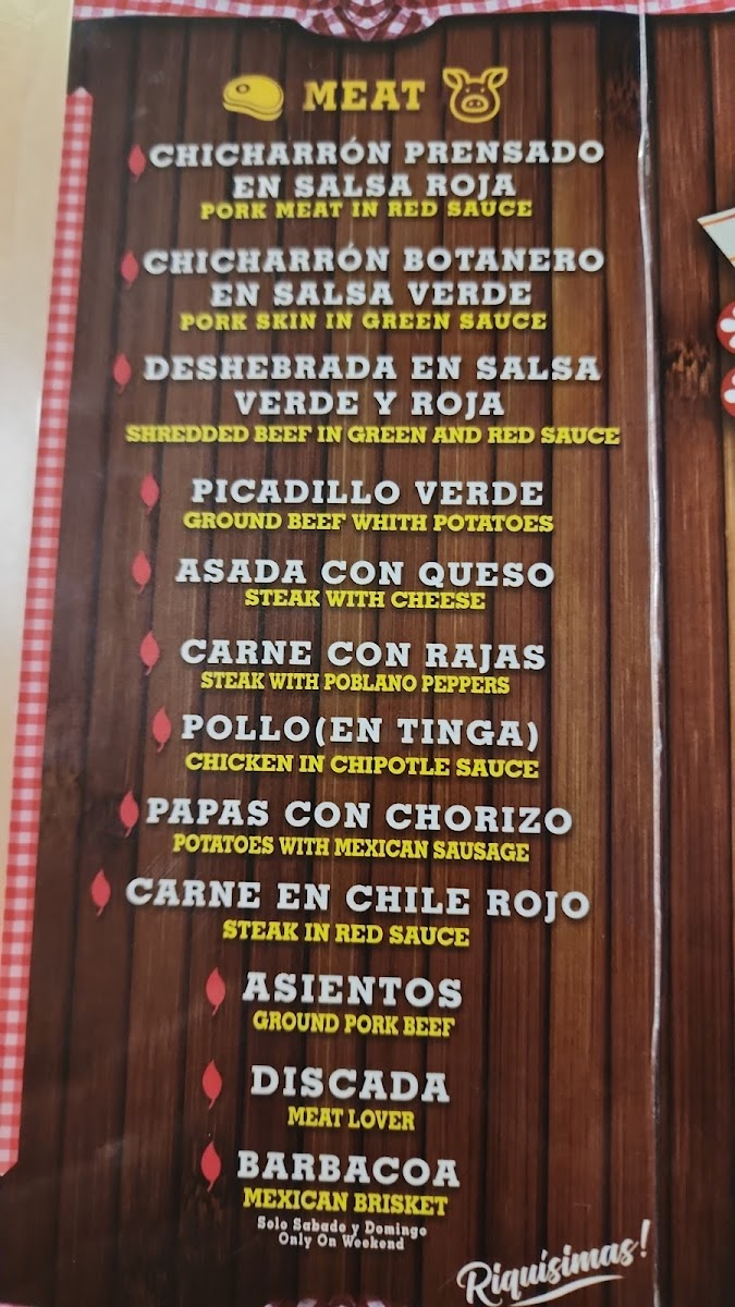 Flour or corn tortilla with your choice of meat. Tortilla de harina o maíz con carne a elección.